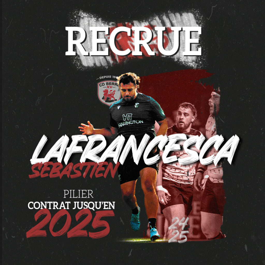 Le CO Berre XV est heureux d’annoncer l’arrivée de Sébastien Lafrancesca pour la saison 2024-2025. Le pilier originaire de Marseille, s’est rapidement démarqué des autres jusqu’à intégrer des centres de formation de haut niveau (Provence Rugby, CA Brive ou encore RC Vannes). C’est un joueur qui a connu la Fédérale 1 ainsi que la Nationale 1.