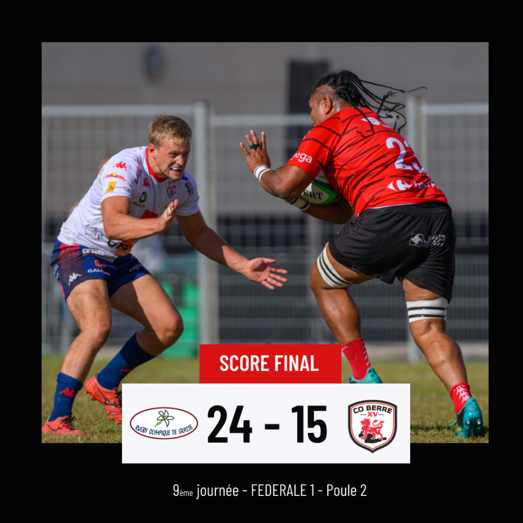 Nos Berrois se sont inclinés à Grasse dans un match à sens unique où les Berrois ont été menés au score quasiment tout le match (MT 7- 3). 2 Essais de Brevier et Ponge, 1 pénalité de Cécot , 1 transformation de Niarquin. Nos rouges et noirs prennent un ultime essai dans les dernières secondes de la rencontre. Deuxième défaite de la saison à l’extérieur. ![]()