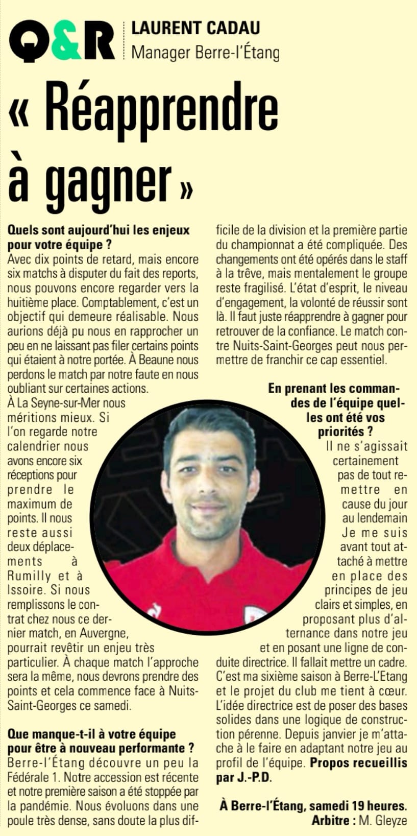 À l’occasion de la rencontre de ce week-end, notre coach Laurent Cadeau a pu répondre à quelques questions de Midi Olympique.