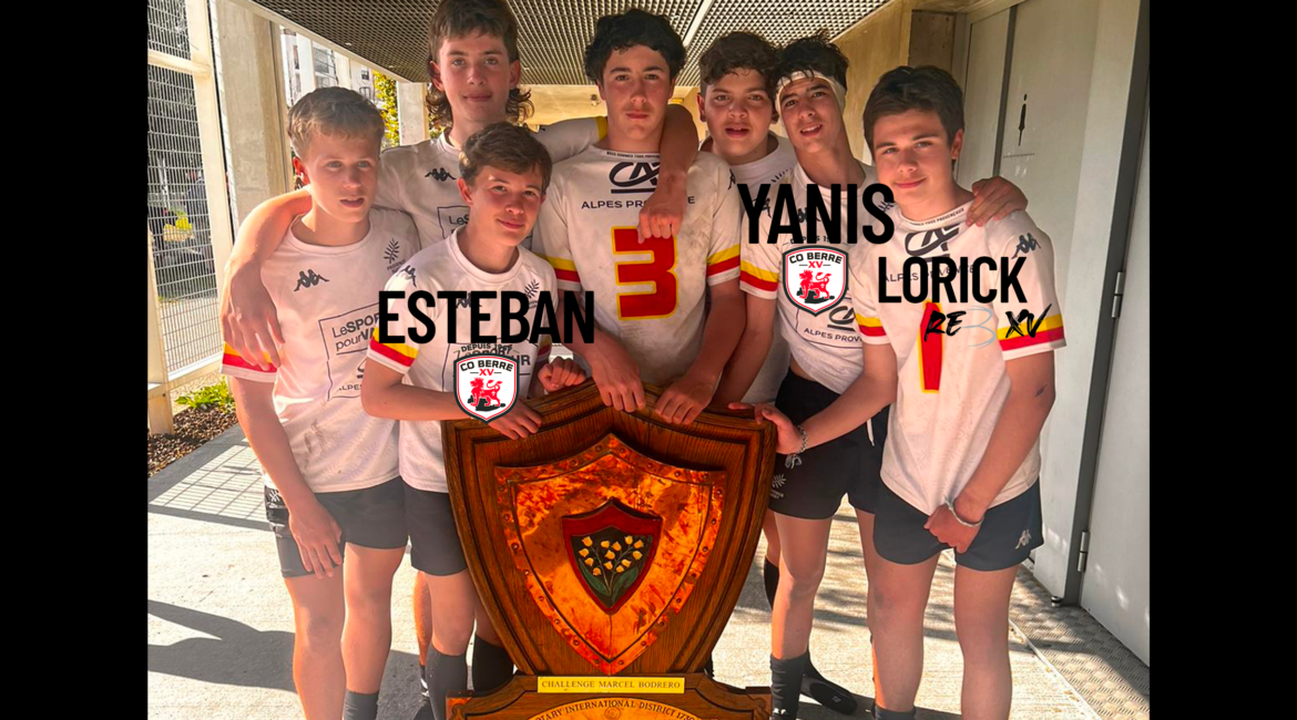 Ils ramènent donc une nouvelle fois le bouclier à la maison avec comme vous pouvez le voir ci-dessus nos joueurs Bérrois Esteban et Yanis ainsi que Lorick joueur du REB XV de Vitrolles RC !!
